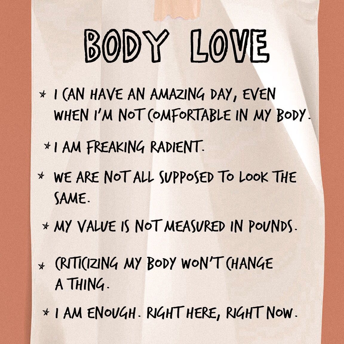 So, how can we make these strong words turn into action? Below I’ve compiled a list of resources for educating yourself more about body self-worth, self-image, respecting your body, taking care of your body, and learning in general more about how you can start your journey to self-love for your body.